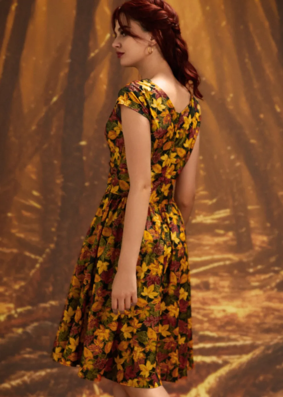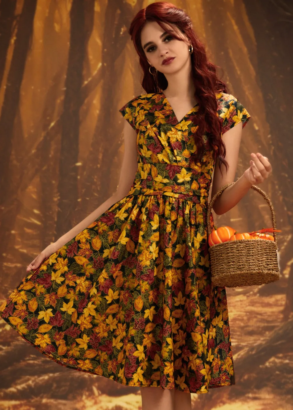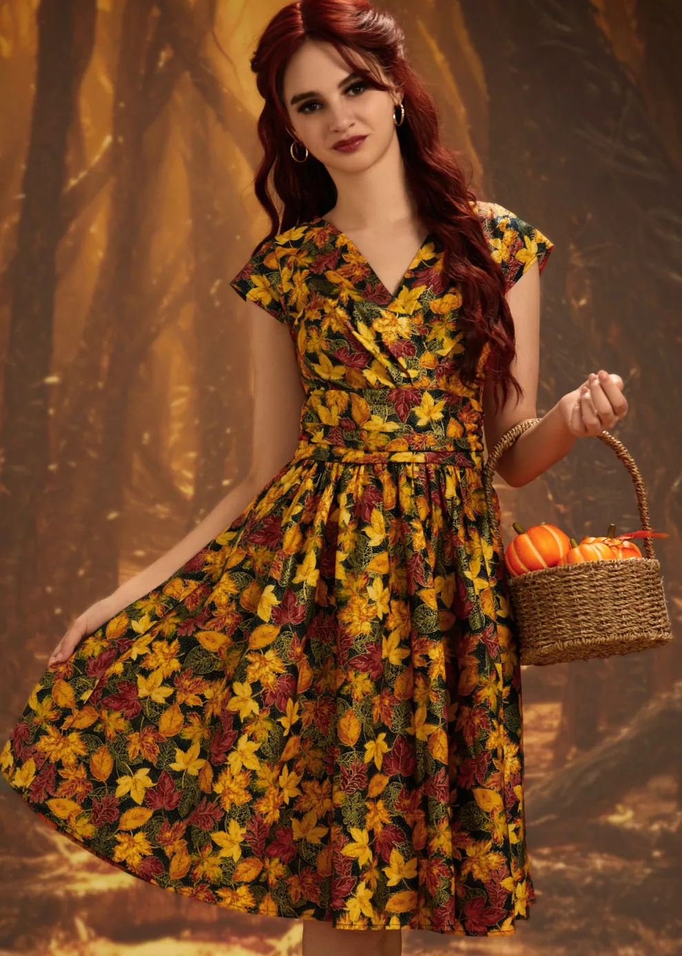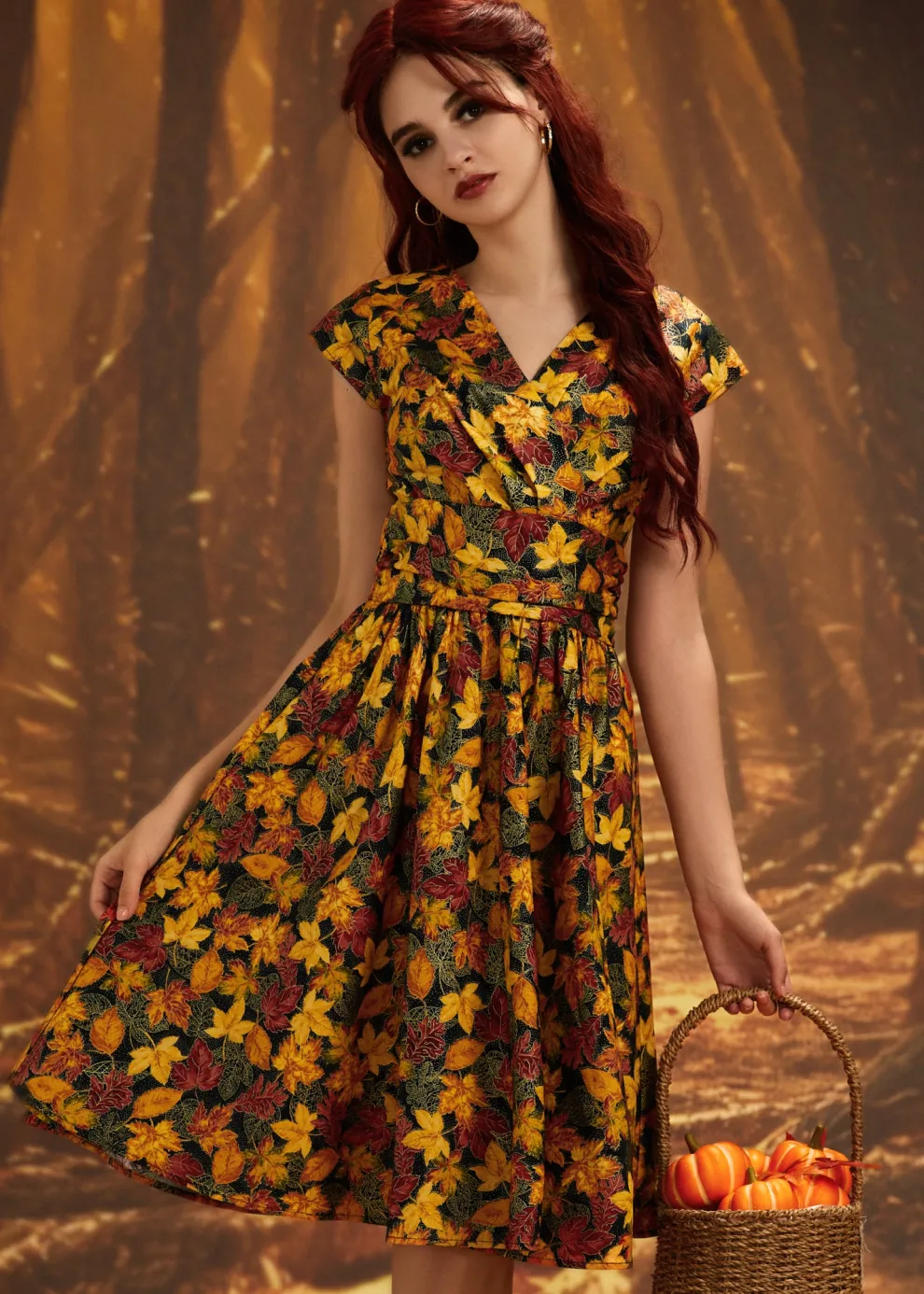 The Greta is everything you could want and more! Shown in our Leaves print, this vintage style cotton dress features a gathered surplice neckline, cummerbund waist with figure flattering gathers, a vintage inspired twirl-worthy skirt with hidden side pockets, and a back zippered closure.
