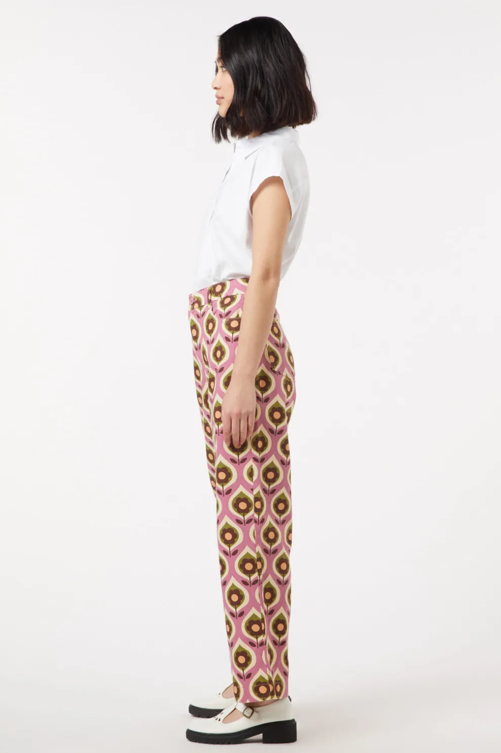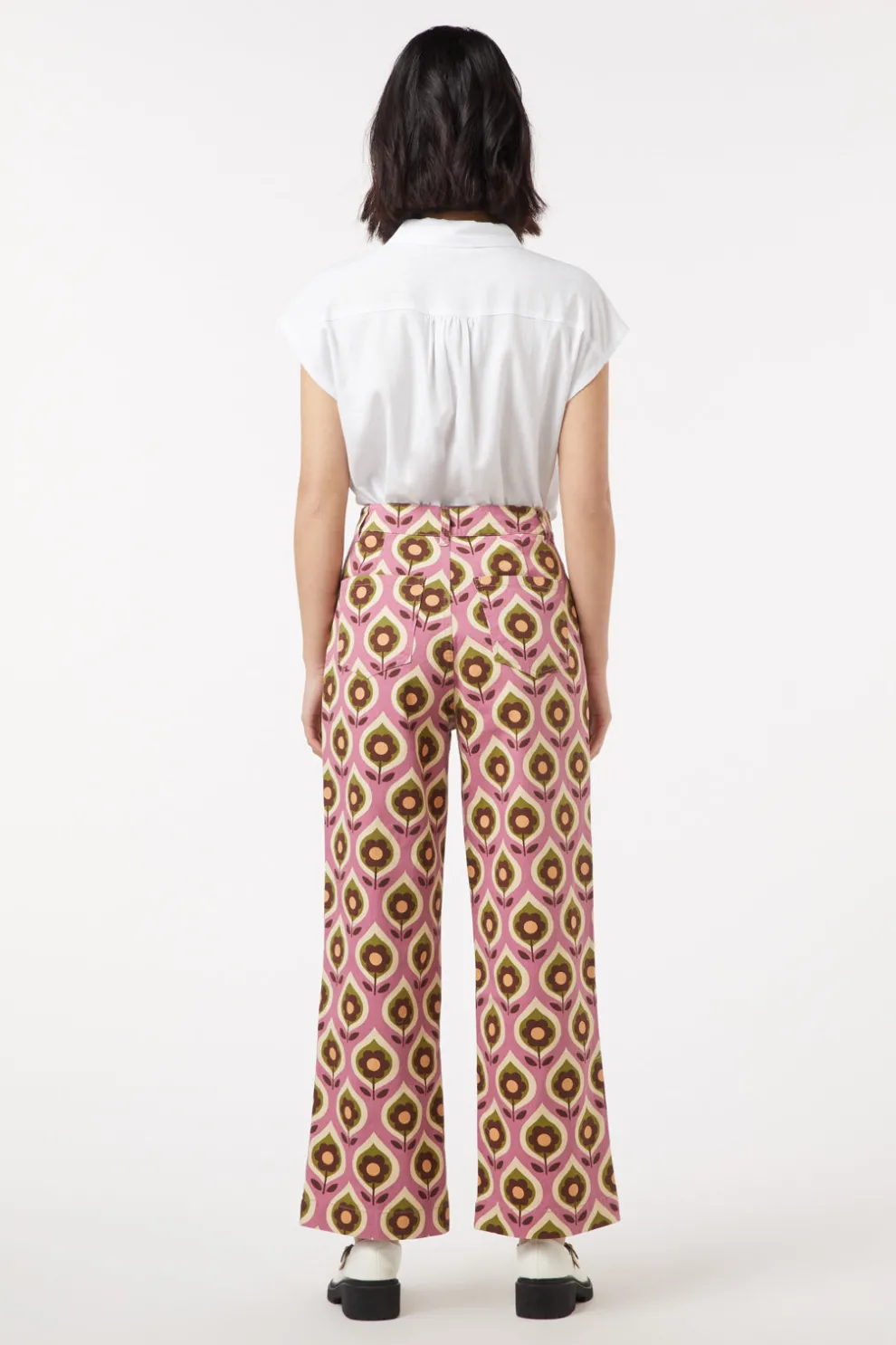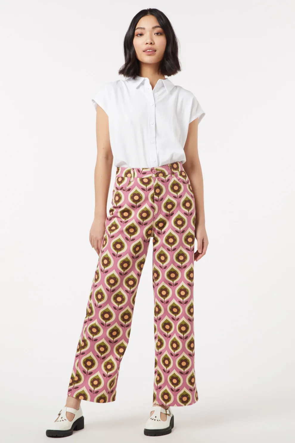 Step out and strut into a throwback vibe with the Mary Jane Jean, where retro chic meets modern swank. Gone are the days of choosing between style and comfort—this daisy wallpaper print is your ticket to nailing that super cute ’60s moment, without having to raid your grandma’s closet. Crafted from soft cotton drill that’s kind to your skin and loves a good stretch, these jeans are all about making you look and feel groovy. The high-waisted rise is a nod to the era of peace and love, offering a silhouette that’s both flattering and forgiving. And let’s talk about those legs – wide enough to make a statement, yet tailored to follow your every move, finishing elegantly at the ankle. Whether you’re channeling your inner flower child or simply looking to sprinkle a little vintage magic into your day-to-day, the Mary Jane Jean is your wardrobe’s new best friend.