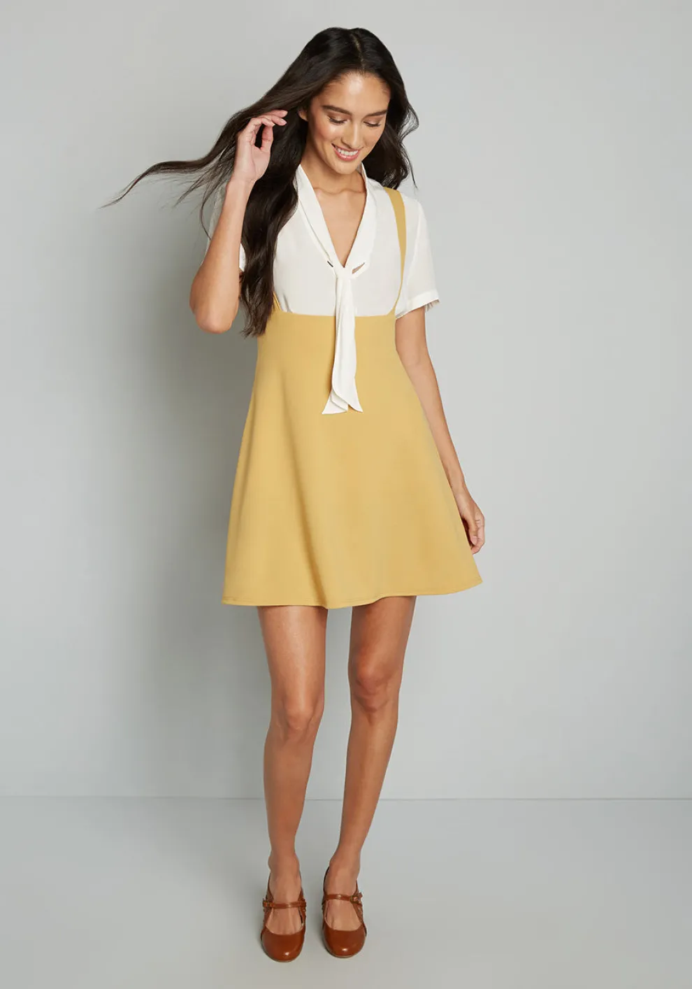 Pioneer a series of groundbreaking looks with this mustard yellow jumper from our ModCloth namesake label, and a wave of accolades will await you! Made from a stretchy woven fabric, your winning ensembles begin with the high-waisted silhouette and pockets of this supportive skirt, and boasts a customized finish from your favorite tees, blouses, and tops in any colors or patterns that make you feel at the top of your fashion game.
