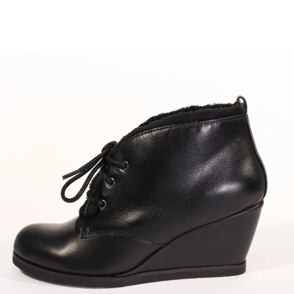 Get ready for winter, with our wedged TORONTO booties. Stay warm with the inner laced up fleece.