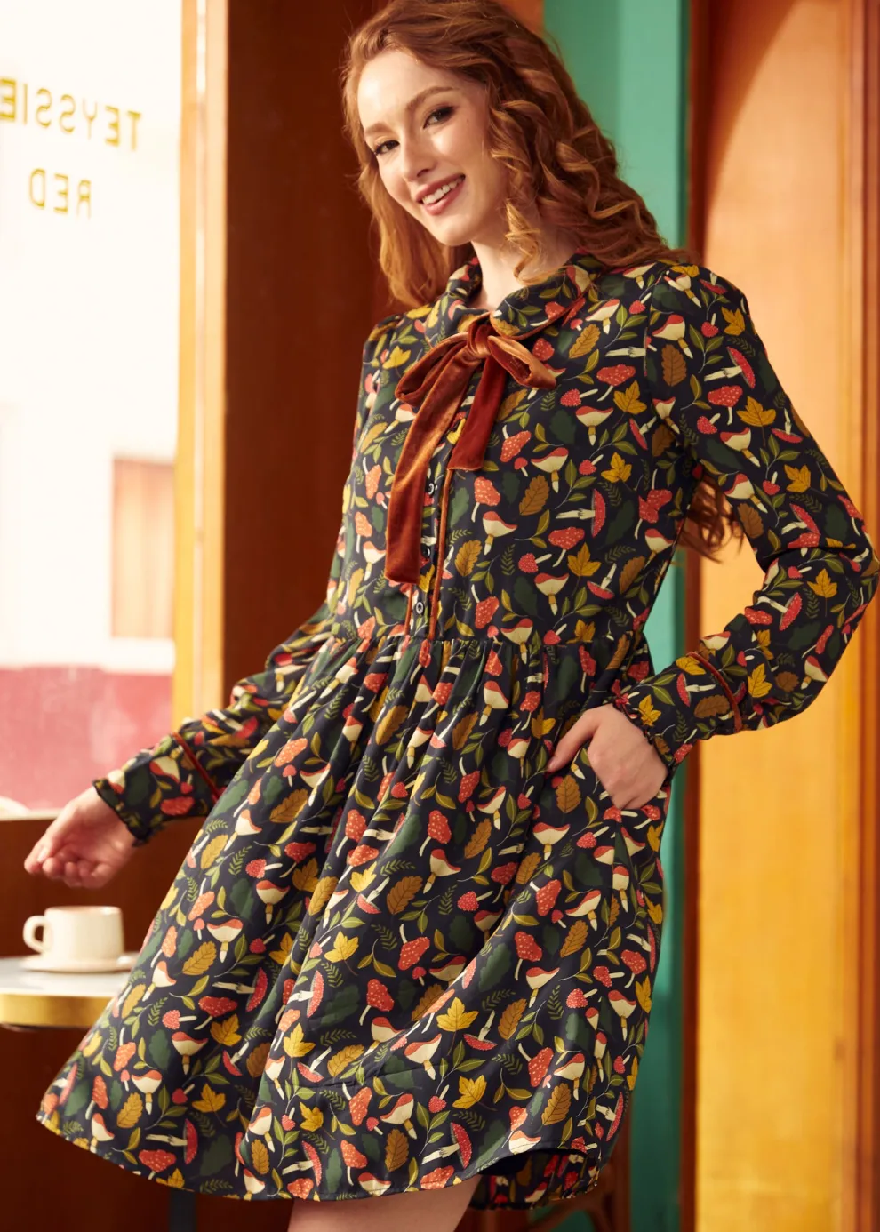Discover woodland whimsy with the Afternoon Tea Time Drop Waist Shirt Dress, a magical find from our ModCloth namesake label featuring a custom mushroom pattern. This printed poly crepe treasure includes pockets for your trinkets and functional buttons. It’s perfect for autumn storytelling or a forest foraging escapade.