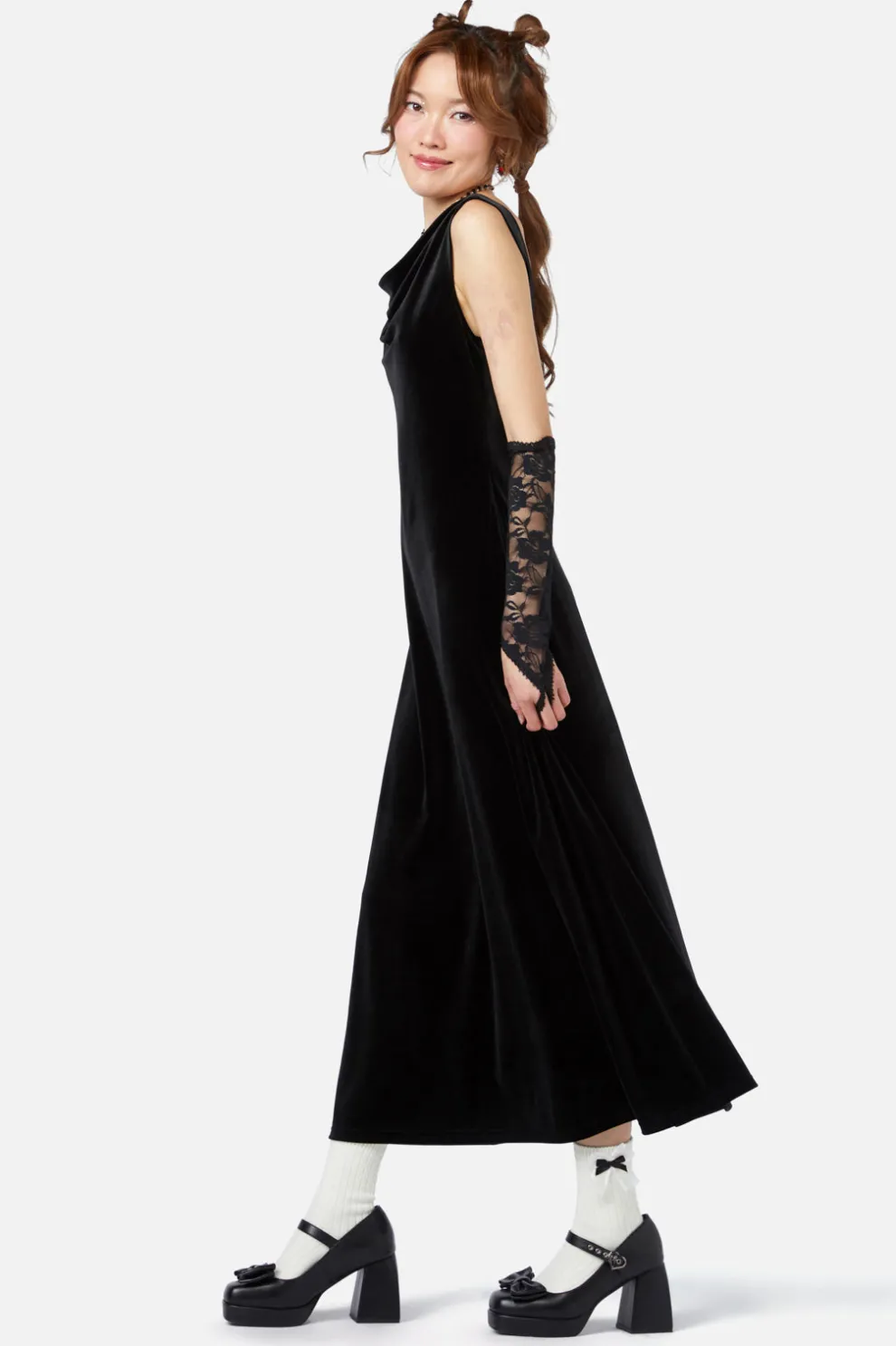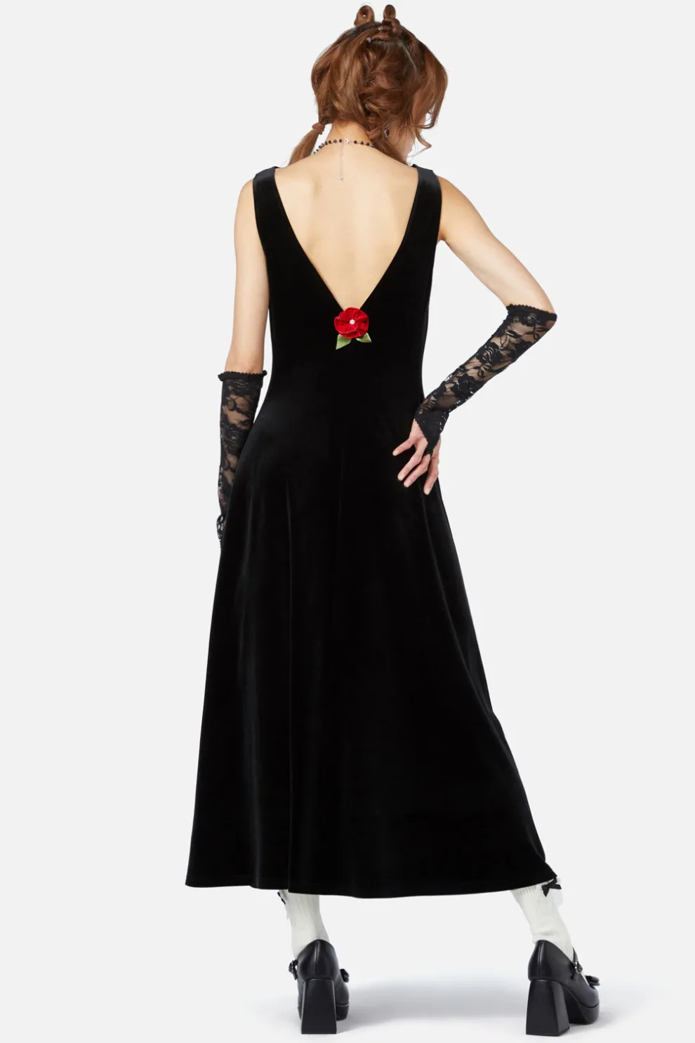 For those who crave timeless elegance with a modern twist, the Back To Black Dress is your go-to for formal sophistication. This stunning dress features a chic cowl neckline that drapes beautifully at the front, while the back opens up for a sultry yet refined look. The full-length skirt adds grace and drama, perfect for formal occasions. Complete with an attachable rose pin for a touch of romance, this dress makes a bold statement in classic black.