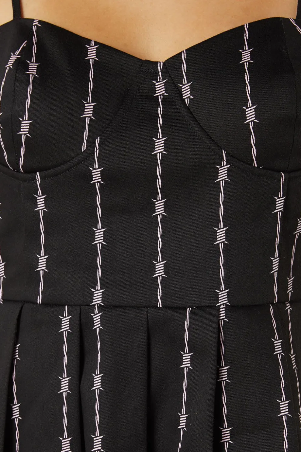 Adorned with a striking ‘Barbed Wire’ print, this dress is perfect for those who love to stand out. Made from a soft cotton elastane blend, it offers both style and comfort.