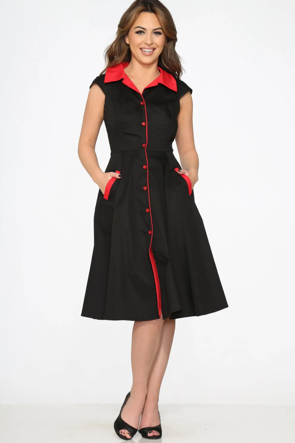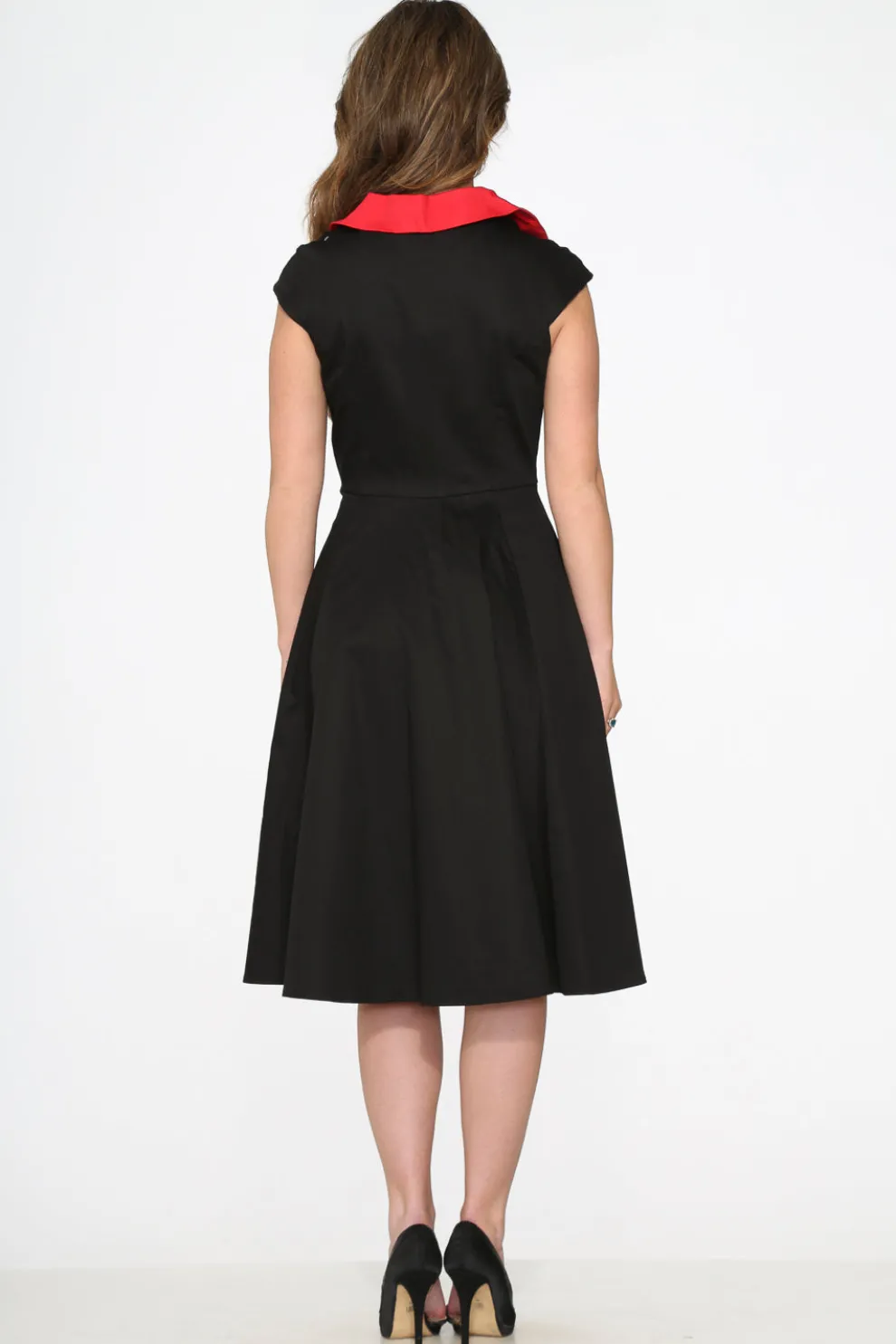 Timeless with a bold twist, the Black Red Trim Swing Dress by Orchid Bloom brings vintage flair and modern confidence together. The classic black base is accented with striking red trim, making it a standout choice for both day and evening wear.