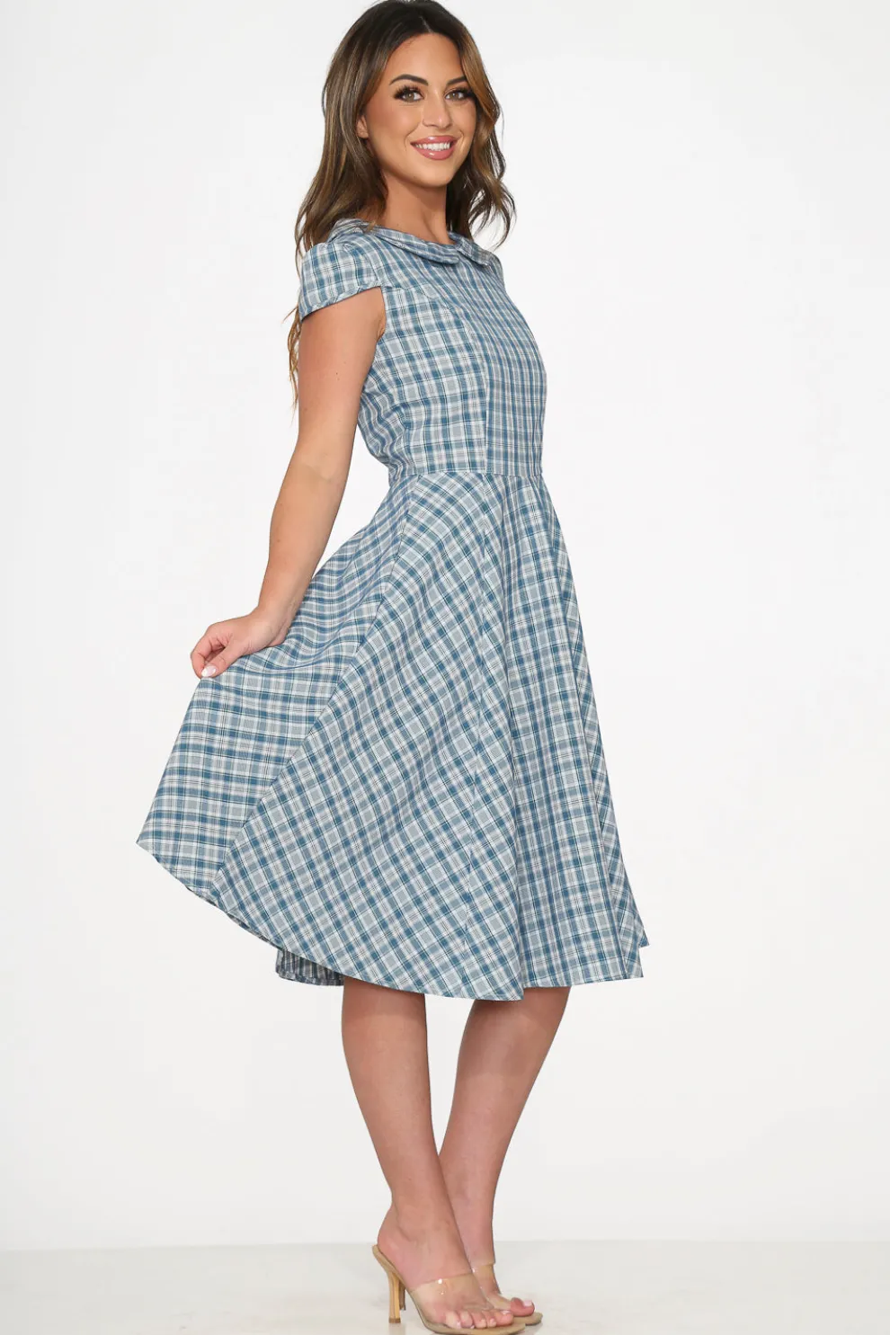Bring on the charm in the Orchid Bloom Blue Plaid Swing Dress! With its vintage-inspired plaid print and swooshy swing silhouette, this dress is a timeless nod to classic cool. Made from a soft, easy-moving blend, it’s perfect for everything from coffee dates to countryside picnics—just add saddle shoes and a sunny outlook.