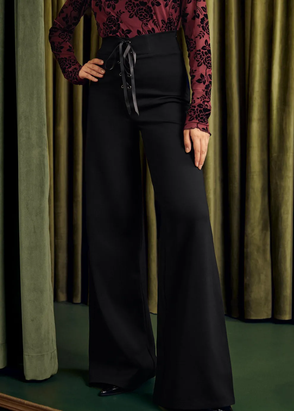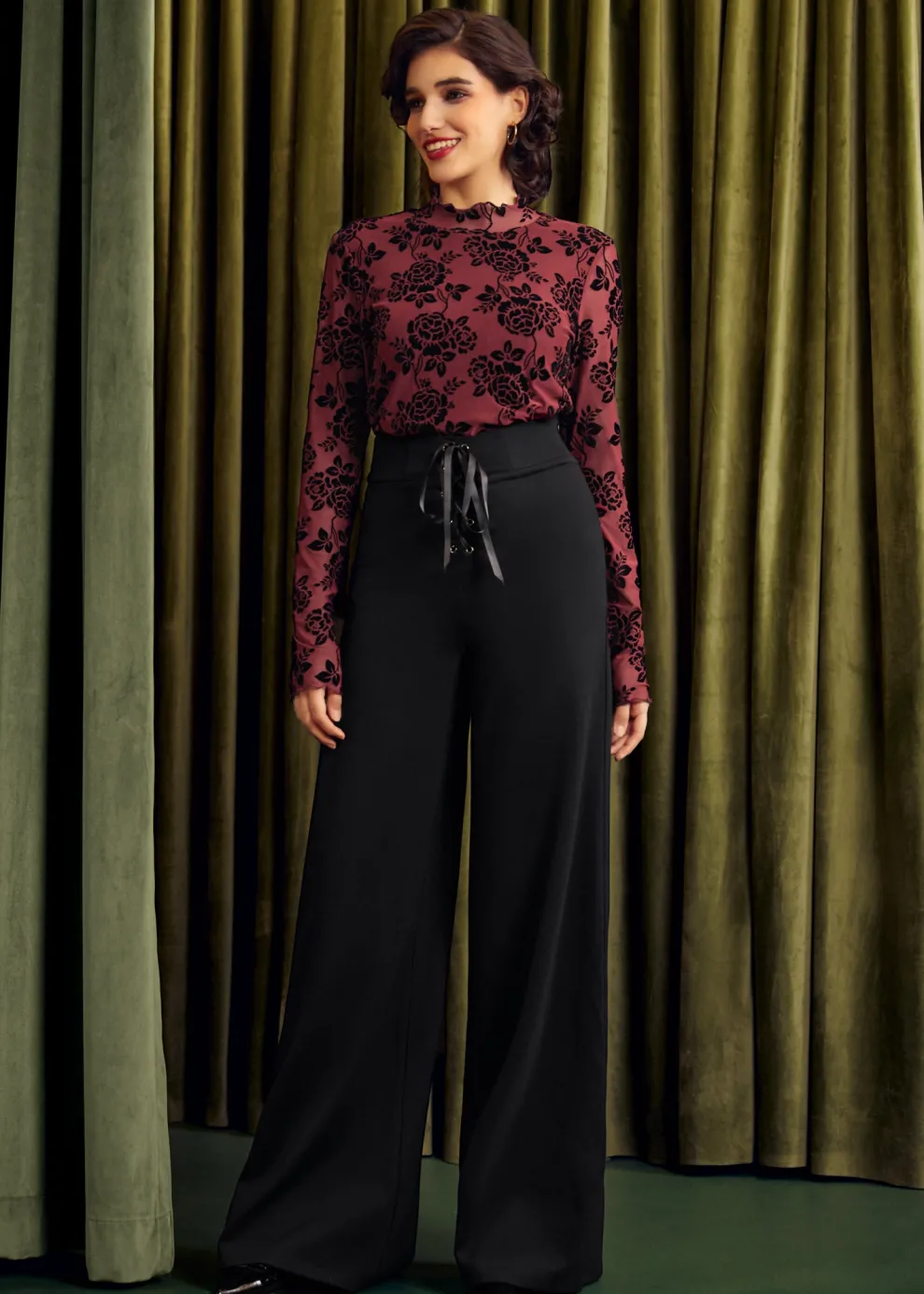 Twirl through the winter season in our Bop ‘Til You Drop High Waist Wide Leg Pants from our ModCloth namesake label. In the elegant Eclipse Noir shade, these knit, medium-stretch pants feature a charismatic keyhole button closure, ensuring every movement is graceful. Versatile for both a festive soiree or a suave office setting, they beckon you to make a playful yet poised statement.