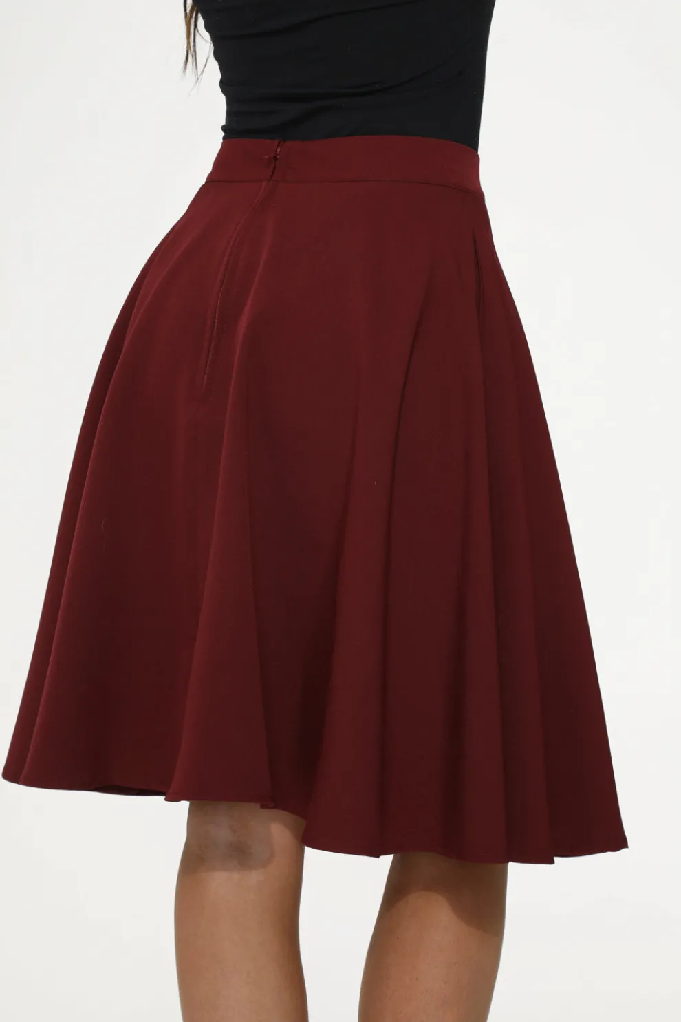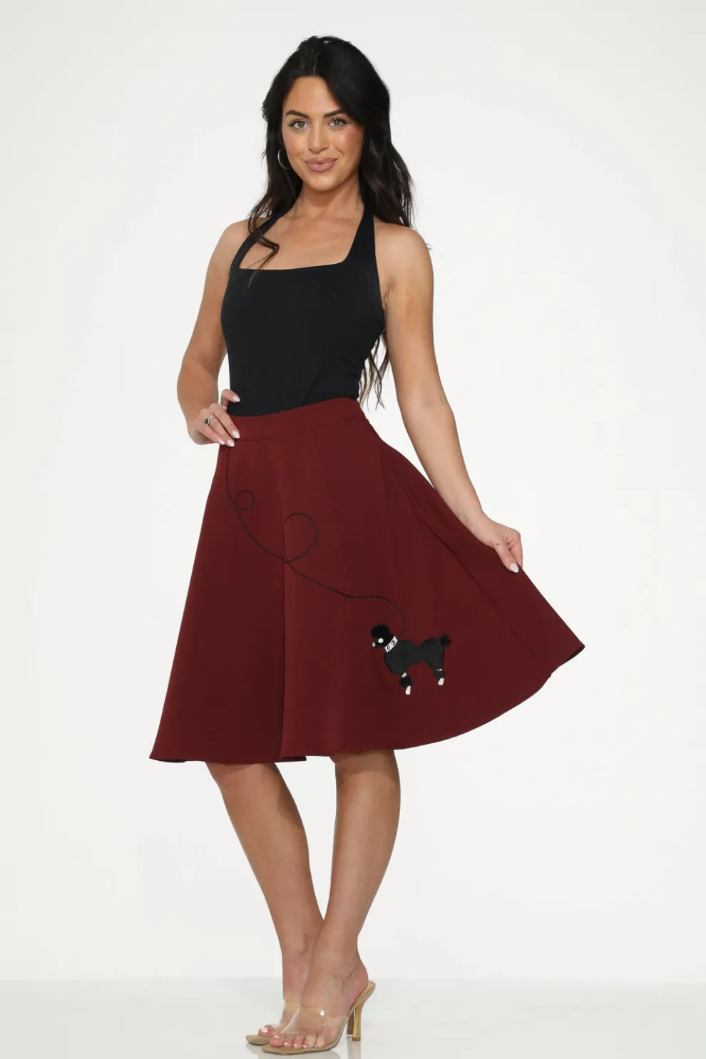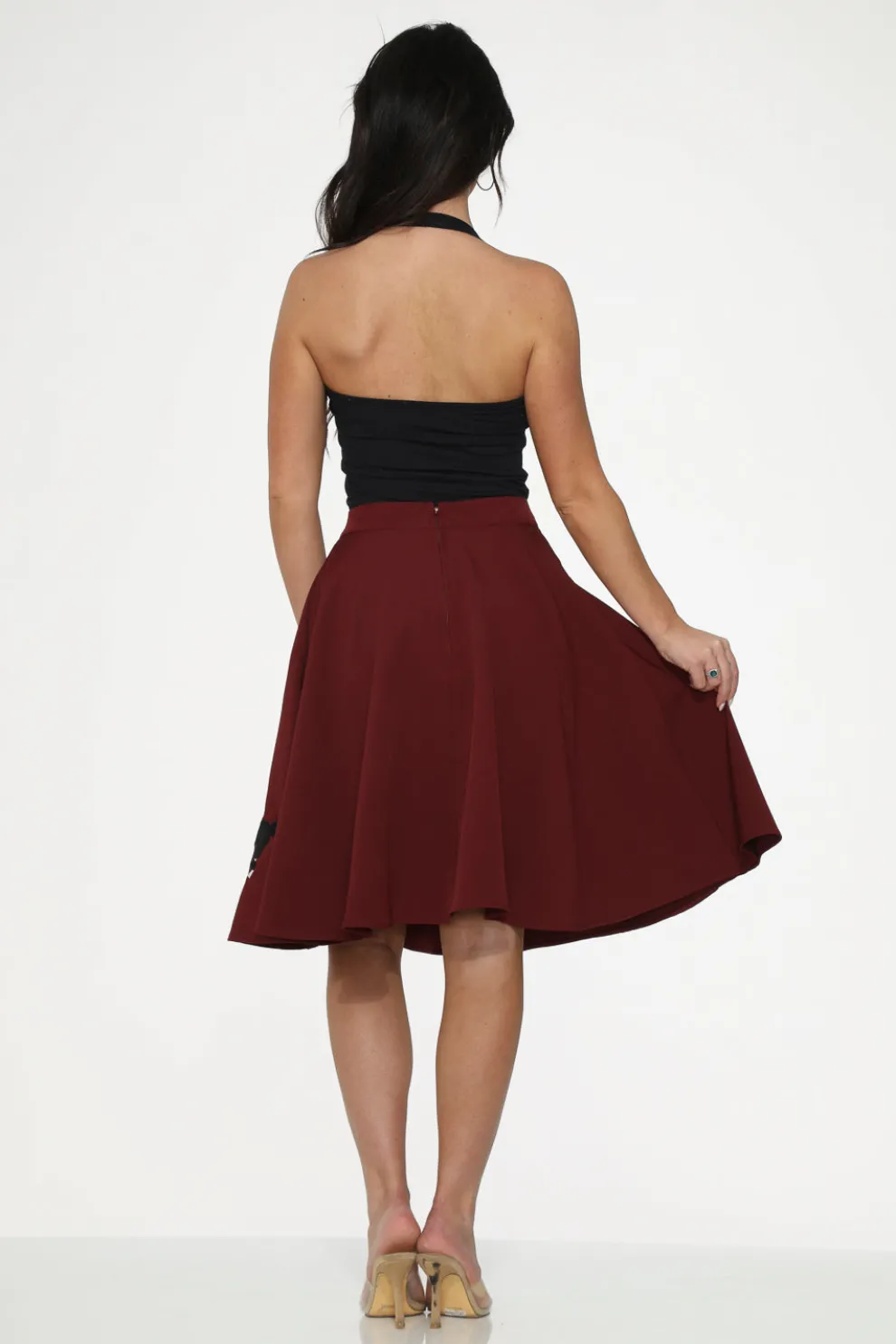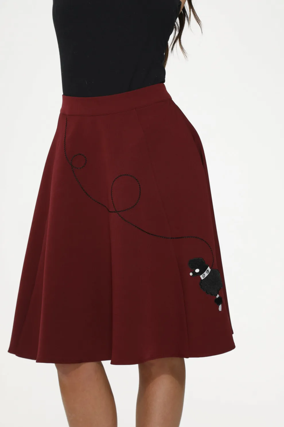 Turn heads and twirl with flair in the Orchid Bloom Burgundy & Black Embroidered Poodle Swing Skirt! With its deep burgundy hue and classic black poodle patch, this skirt is pure vintage charm with a bold twist. The flouncy silhouette and comfy stretch blend make it perfect for moonlit strolls, retro dances, or simply making every sidewalk your runway.
