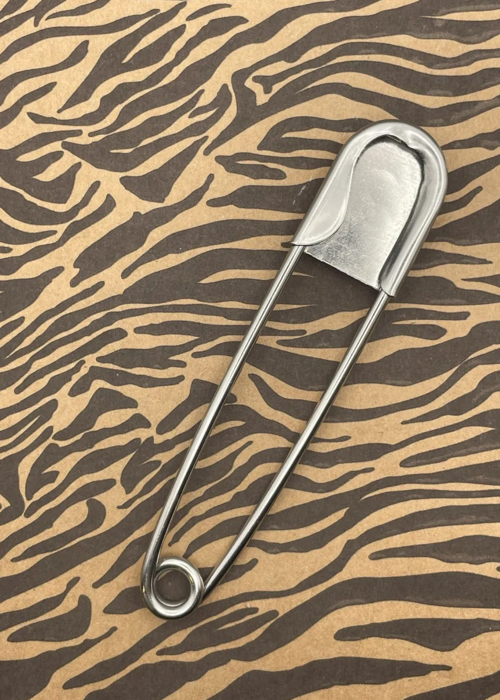 Handmade in California by Bog-Art-Studio, this 5-inch jumbo stainless steel safety pin keychain features a real dice set in a sterling silver serrated bezel and framed by twisted deco wire, combining industrial edge with casino charm. Symbolizing luck, fate, and risk, the dice represent bold decisions and embracing the unknown. Inspired by Las Vegas, this keychain is a stylish tribute to fortune, adventure, and living fearlessly.