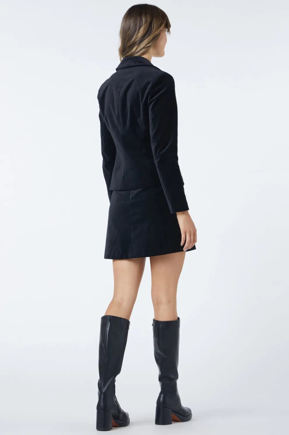 Channel a glamorous 70’s bohemian vibe with the Florence Embroidered Jacket. This fitted velvet jacket showcases intricate floral embroidery on the front, adding a touch of luxe style. Featuring a deep V neckline, notched collar, and full-length sleeves, this piece sits at hip length, perfect for a stylish and sophisticated look. Available in classic black.