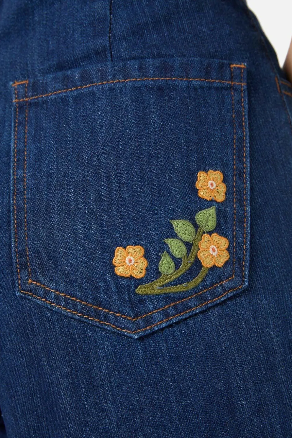 Channel your inner 70s muse with the Flower Child Embroidered Jean by Princess Highway. These high-waisted denim jeans feature retro floral embroidery trailing down the leg—bringing serious flower power vibes to your everyday look.