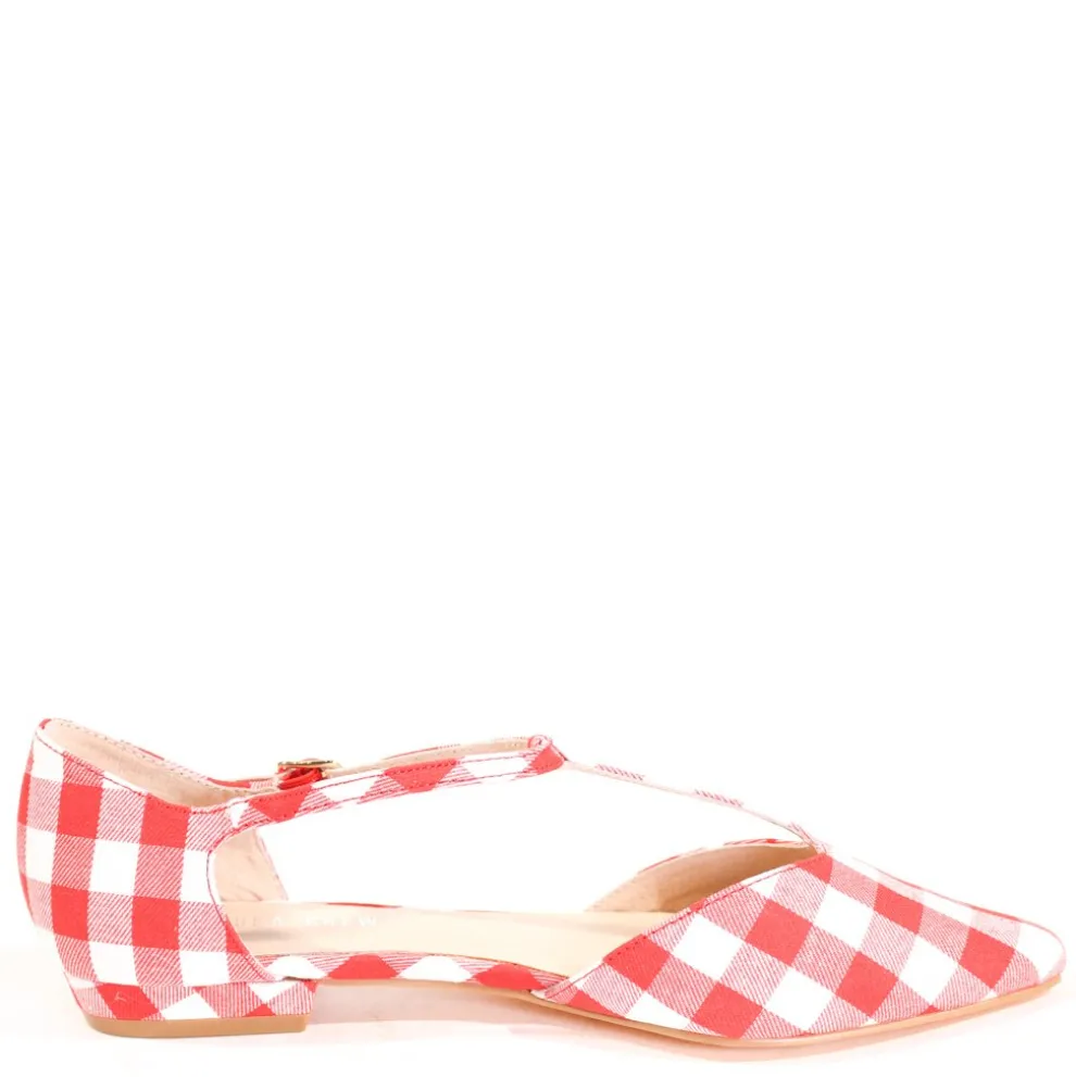 Add a playful pop to your everyday look with the Garden Gingham T-Strap Flats by Chelsea Crew. Crafted in soft embroidered fabric, these pointed-toe flats feature a vintage-inspired T-strap silhouette and an adjustable buckle for a secure, all-day fit. Whether you choose black gingham, red gingham, or blush floral, Garden brings a fresh burst of personality to every step.