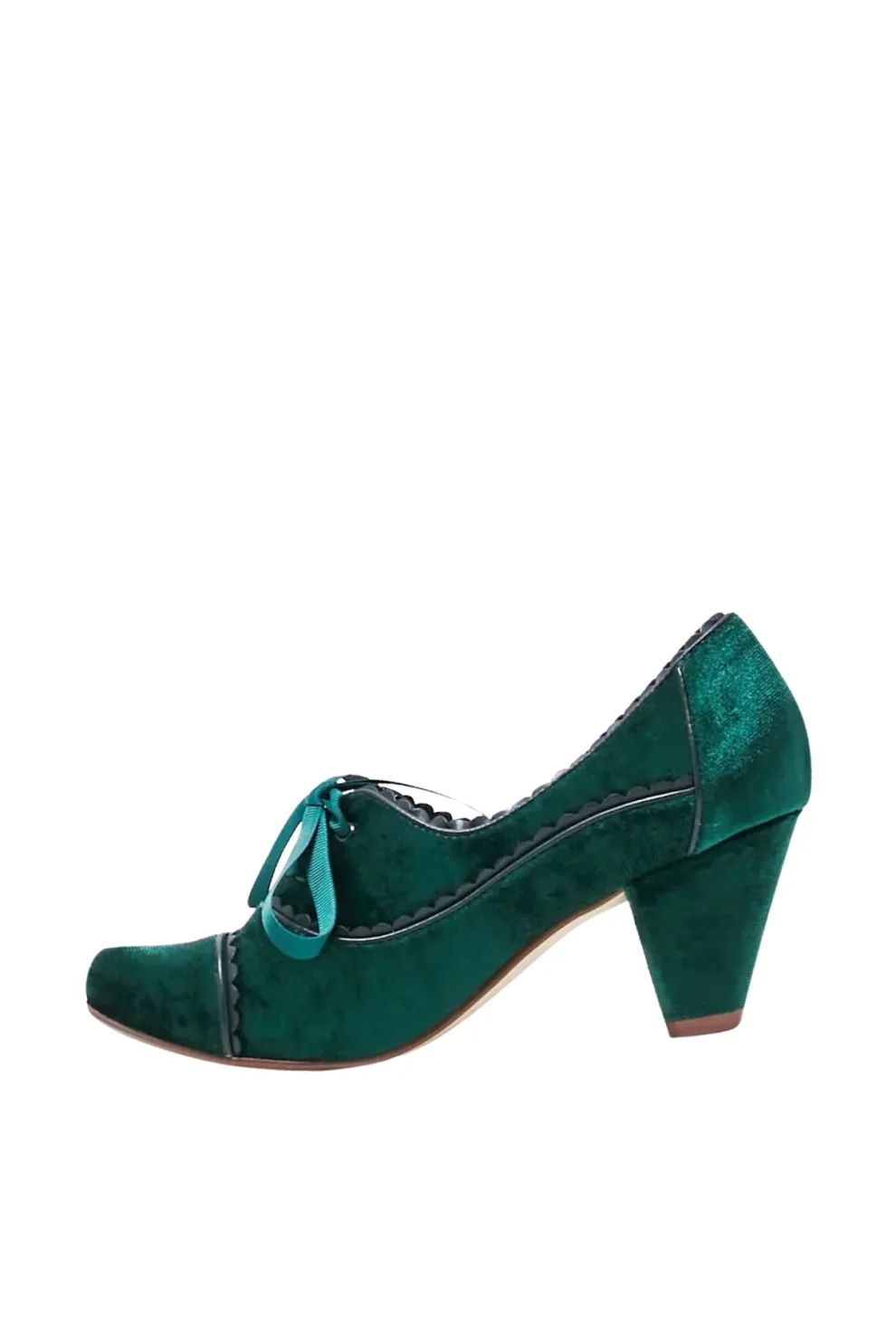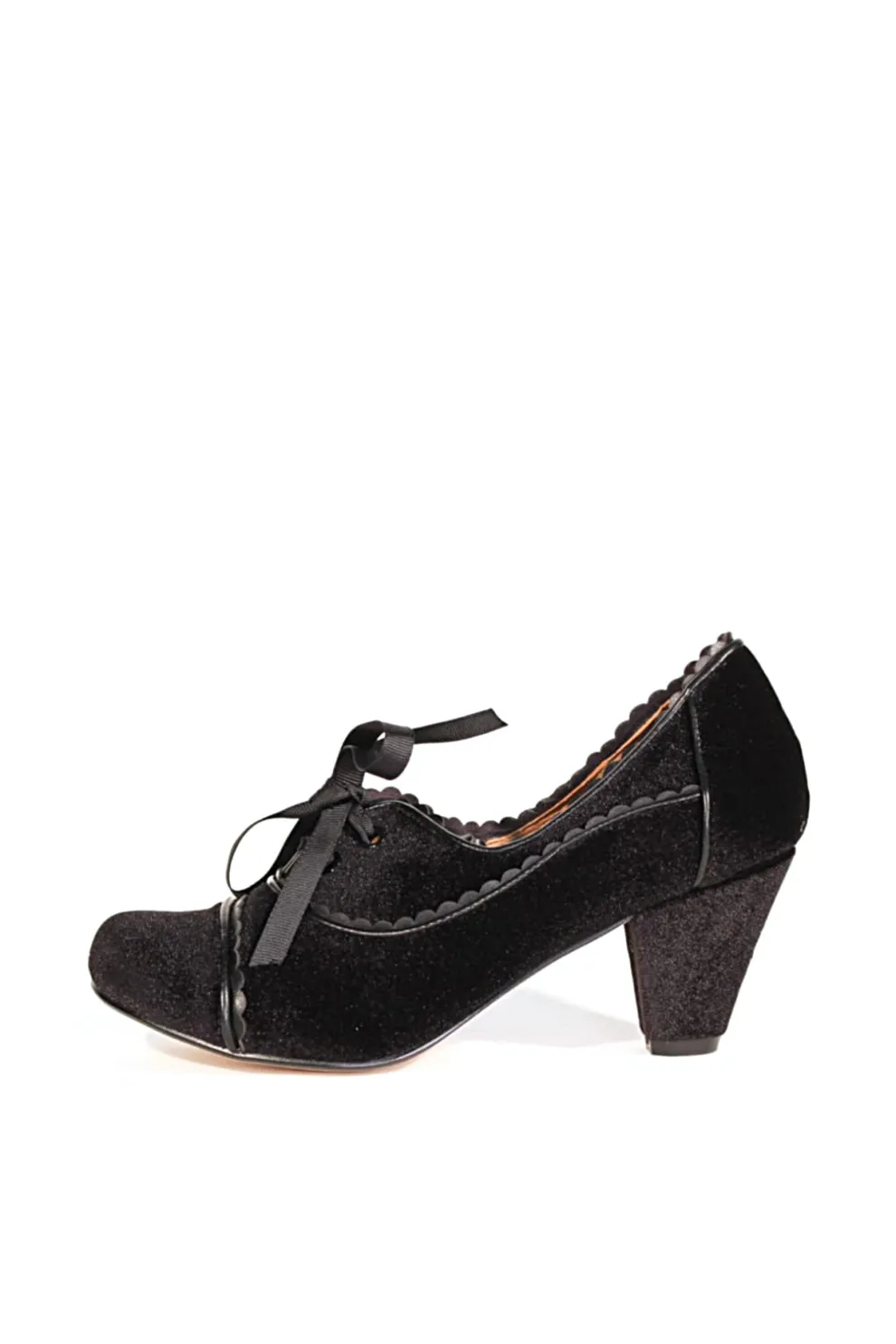 Trendy oxford inspired heel by Chelsea Crew with a scalloped low cut collar. Ribbon lace ties make this shoe extremely flirtatious with a very girly twist.