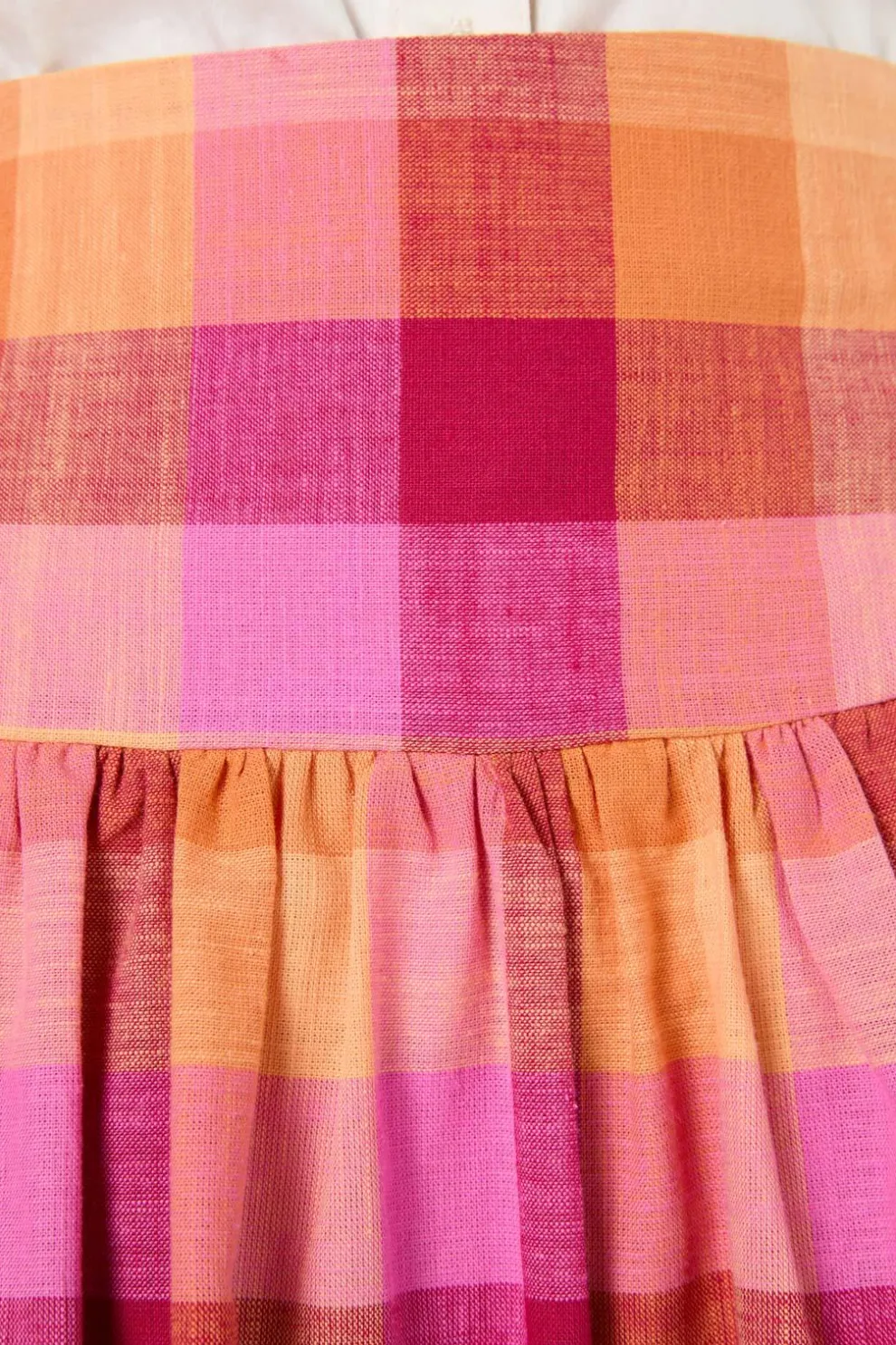 Bask in the warmth of sunset hues with the Maxine Check Midi Skirt, a delightful blend of red, pink, orange, and yellow in a charming checkered pattern. Designed for effortless elegance, this midi-length skirt features a wide waistband for a flattering fit, with soft gathering below to create a graceful silhouette. A back zipper closure ensures ease, while its cotton fabric keeps things light and breathable—perfect for sun-dappled strolls and weekend picnics.