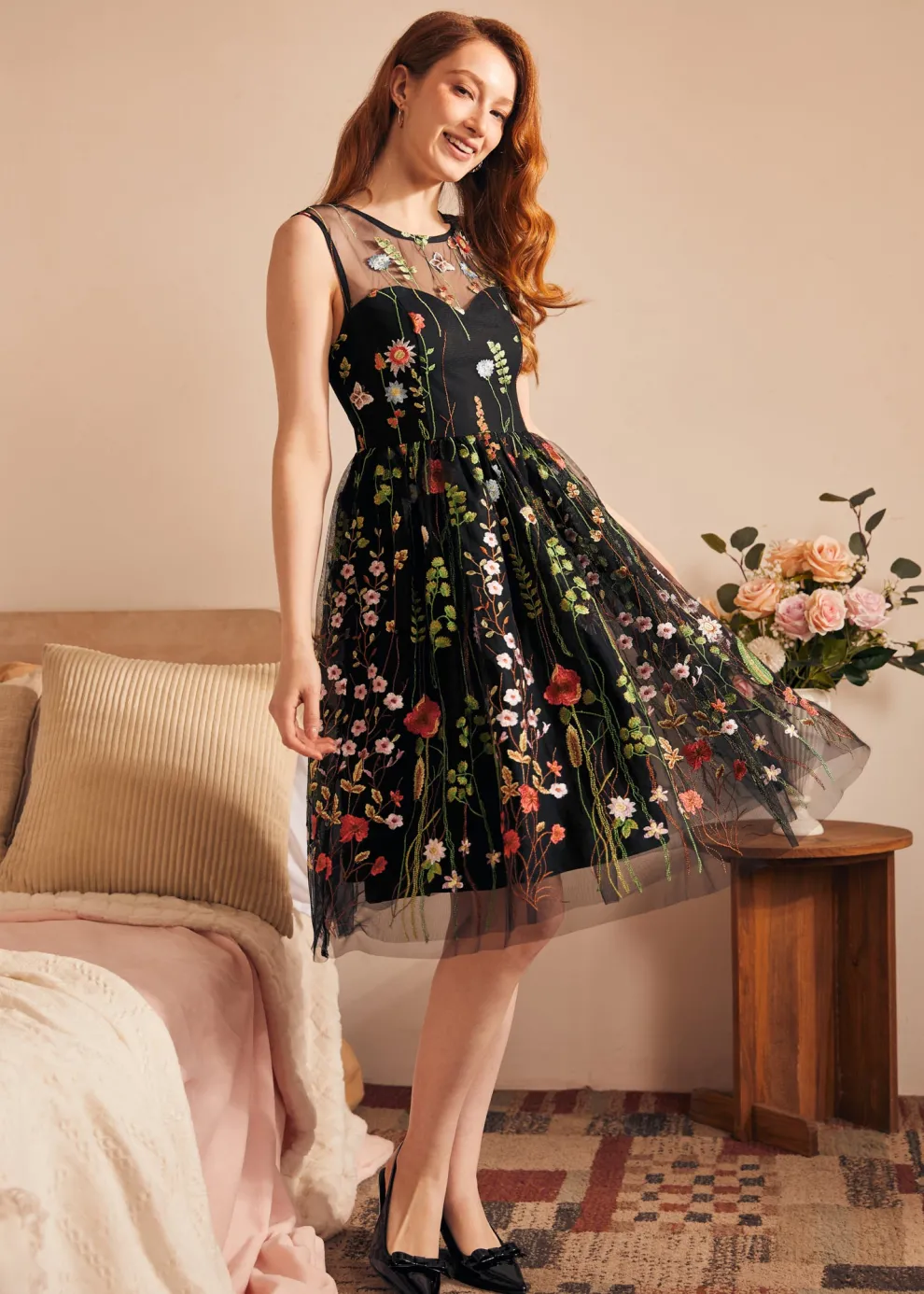 From the heart of winter’s dream, the Mystique Mirage Fit & Flare Dress in gothic garden blooms from our ModCloth namesake label. Featuring a knit construction that comfortably hugs your figure, complete with playful buttons and a secure zipper closure. This piece weaves a tale of vintage romance with its dark floral pattern, perfect for an evening of enchantment or a day of whimsical wandering. Add tights and a cozy cardigan for the ultimate wintertime ensemble.