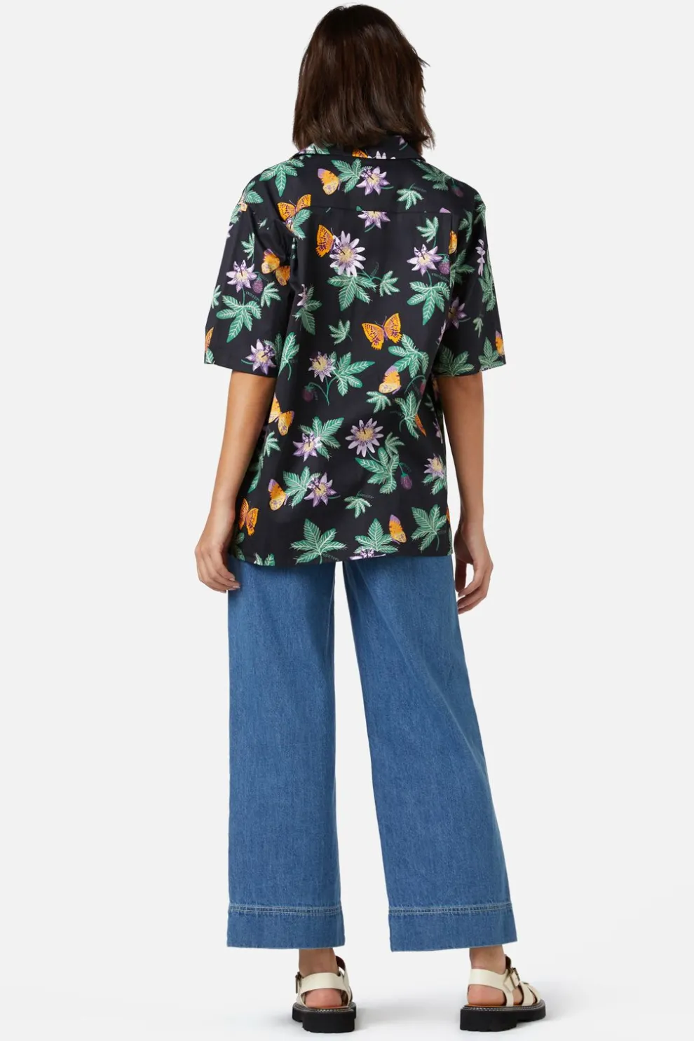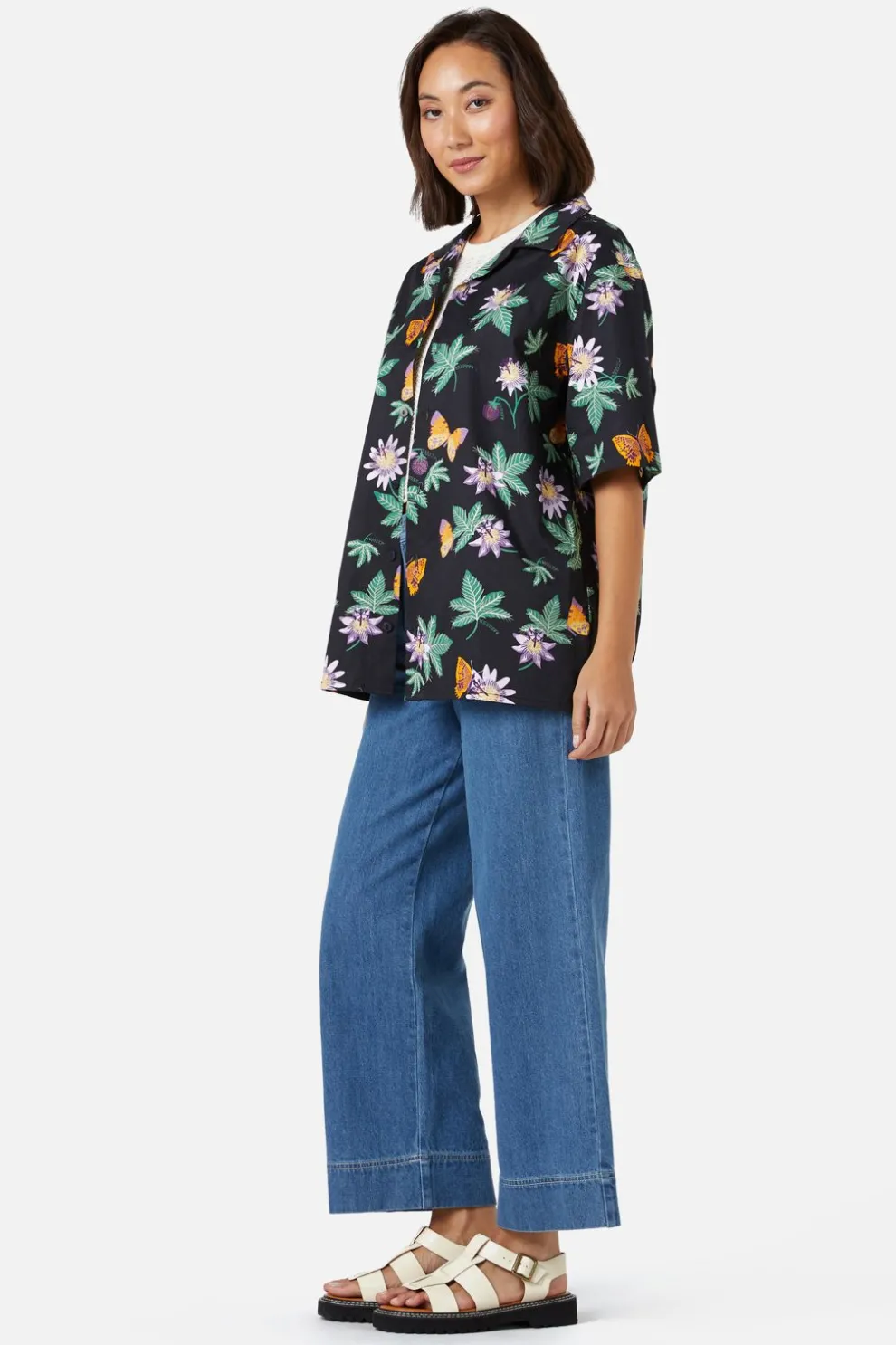 Dive into the essence of summer with the Passionfruit Shirt, where passion fruit, flowers, and golden butterflies converge to sprinkle magic on your wardrobe. A true spectacle of summer vibes, this unisex shirt embraces everyone with its inclusive design meant for him, her, and they. The revere collar and button-through front add a classic touch, while the roomy fit and short sleeves promise comfort and breeziness. Made from softened cotton fabric, this shirt isn’t just a piece of clothing—it’s a wearable summer love story, undeniably perfect for those who carry sunshine in their pockets.