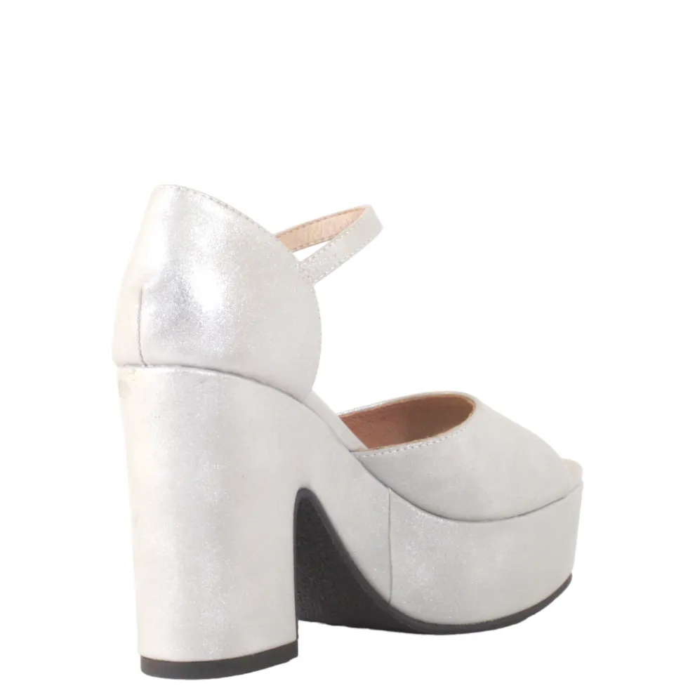 Channel vintage glam with the Quill Silver Platform Heels by Chelsea Crew. Crafted in shimmering silver microfiber, these retro-inspired heels bring timeless elegance to modern style. With a sturdy 3.5″ heel, leather lining, and adjustable buckle closure, Quill is perfect for dancing the night away or adding a bold finish to your evening look.