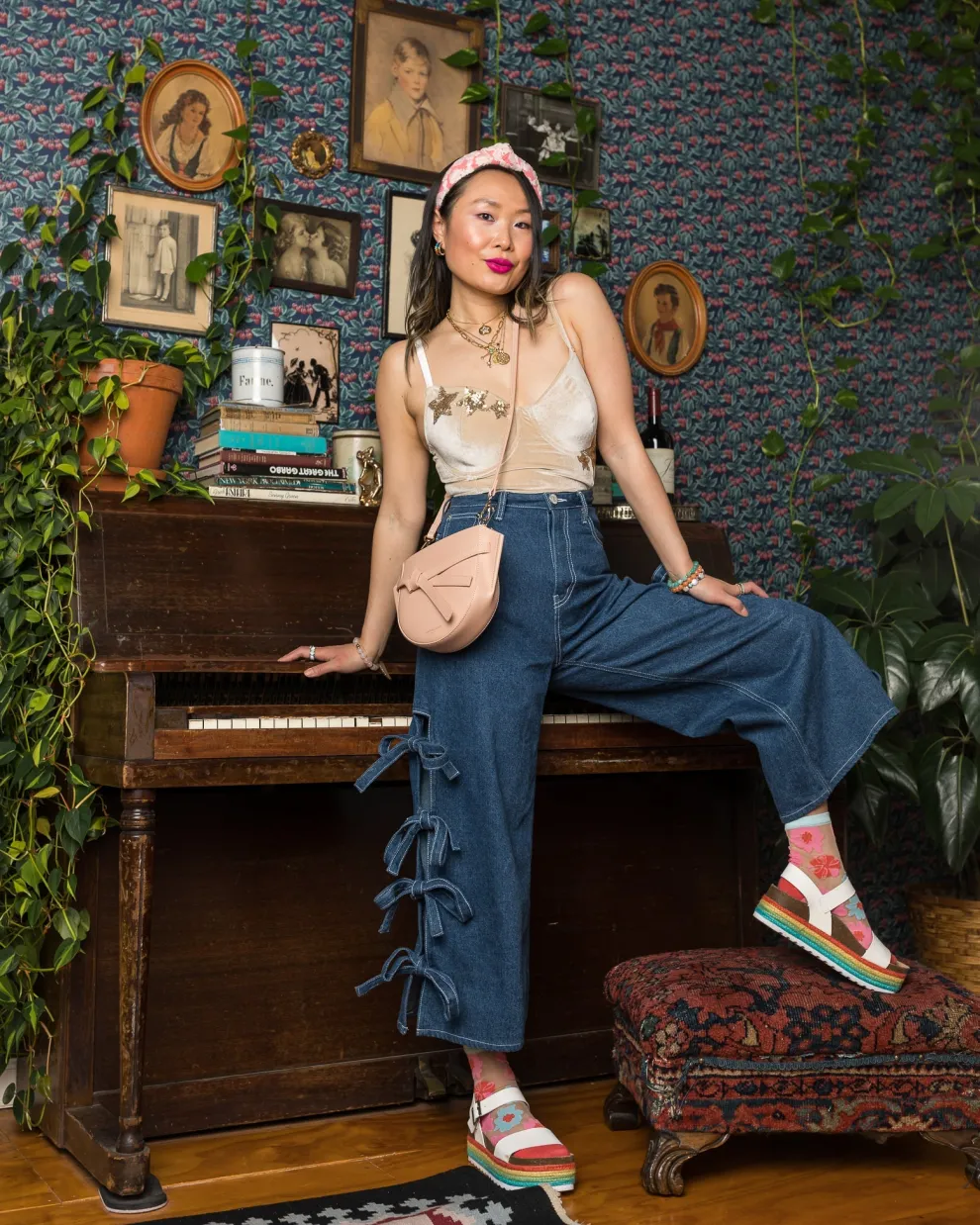 A fresh and playful take on florals, ribbon roses in pink, blue, and red adorn the feet with nude sheer fabric. This ankle length floral sock is great to pair with sandals, flats, and sneakers for a cute casual look.