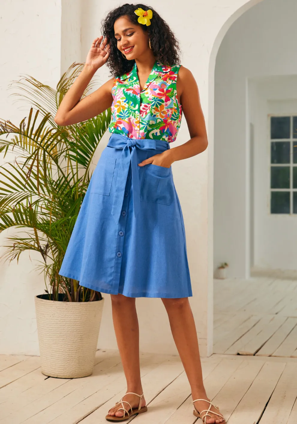 Invoke a dash of cheer in this radiant, sleeveless shirt from our ModCloth namesake label. With its classic collar and button-up front, this versatile top is spot-on for both professional polish and leisurely pursuits. Crafted from breezy, lightweight fabric, it beckons you to create your own narrative of playful charm.