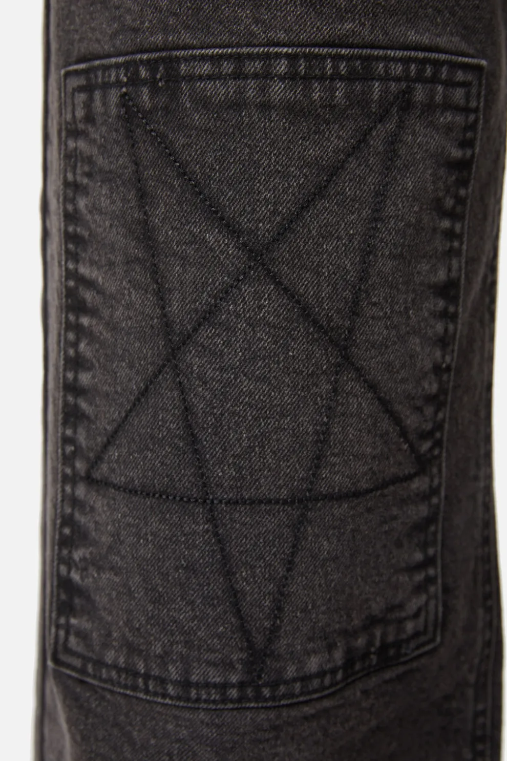 Step into a world where comfort meets whimsy with the Wide Leg Jean by Dangerfield, a piece that redefines casual wear with a playful twist. Fashioned from cotton and featuring an intriguing acid-washed denim texture, these jeans are your ticket to a laid-back vintage vibe with a modern edge. The wide-leg cut ensures a breezy feel, while the fitted waistband promises a flattering silhouette for all who slip into them. Not just a pair of jeans, these are a canvas adorned with an ‘astral’ artwork patch, adding a touch of the cosmos to your wardrobe. Equipped with functional pockets at the side and back waist, they’re as practical as they are charming. Available in an enigmatic black, envision pairing them with a simple tee for an art gallery visit, or a soft knit for that cozy coffee shop date. Dive into the day with a blend of comfort, functionality, and a dash of celestial magic.