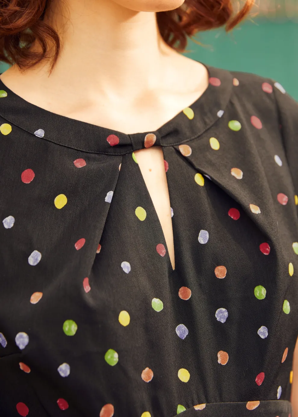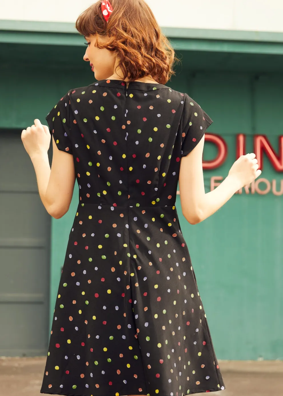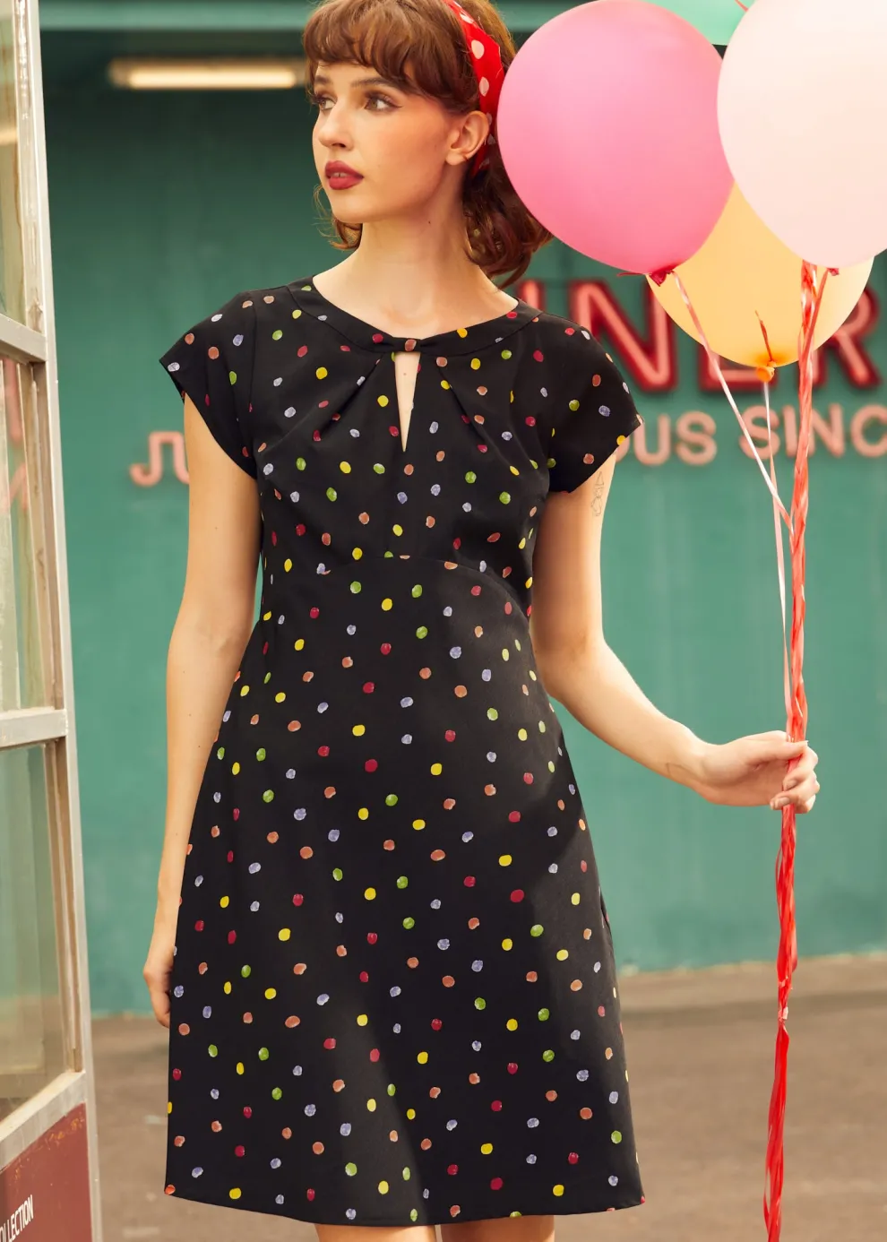 Sweet, sassy, and sprinkled with charm—The Dot Dot Diner Dress is serving up vintage vibes with a side of whimsy. Designed by our ModCloth namesake label, this empire-waist A-line features candy-colored polka dots, a darling keyhole neckline, and fluttery short sleeves that feel just right for sock hops, soda pop, and sunny-day strolls.