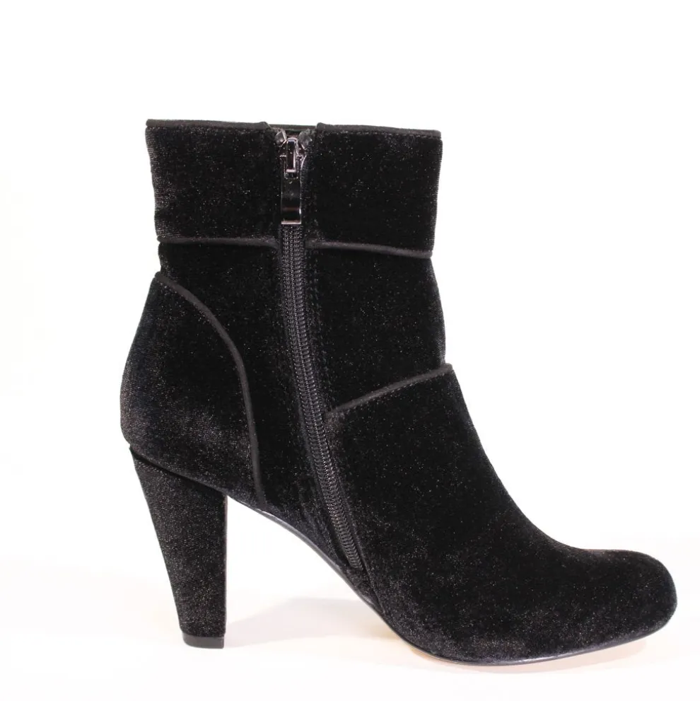 Add a touch of holiday sparkle with the Topaz Velvet Booties by Chelsea Crew. Featuring a soft velvet upper, classic almond toe, and a sleek 3″ heel, these round-toed booties bring just the right amount of festive flair. A functional inside zipper makes them easy to slip on, so you’re ready to shine all season long.